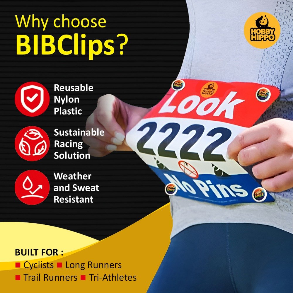 HobbyHippo Race Bib Clips, your race day companion – Safety Lock Fasteners – Secures Running, Marathon, Cycling, and Event Numbers, Non Magnetic, Easy to Use, Soft & Reusable, Replacement for Pins & Magnets.